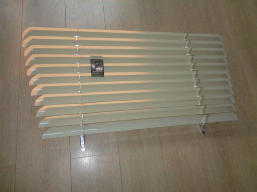 Ook deze jalousie heeft, net als onze eigen gemaakte versie, 11 lamellen. Enkel verkrijgbaar in de kleurcombinatie zilveren houders met ivoorkleurige lamellen.