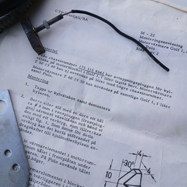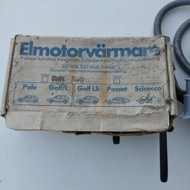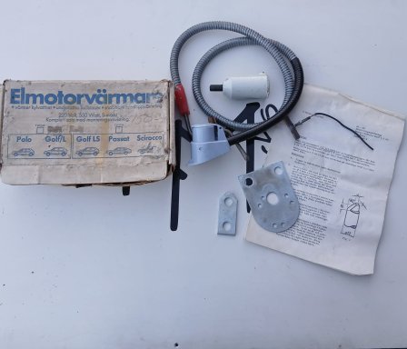 Motor verwarmingskit, gemaakt in Zweden voor de 1100cc motoren uit Scirocco 1, Golf 1, Passat 1. Polo 1. Origneel VW item 'motorvärwarme T 60 19 50'